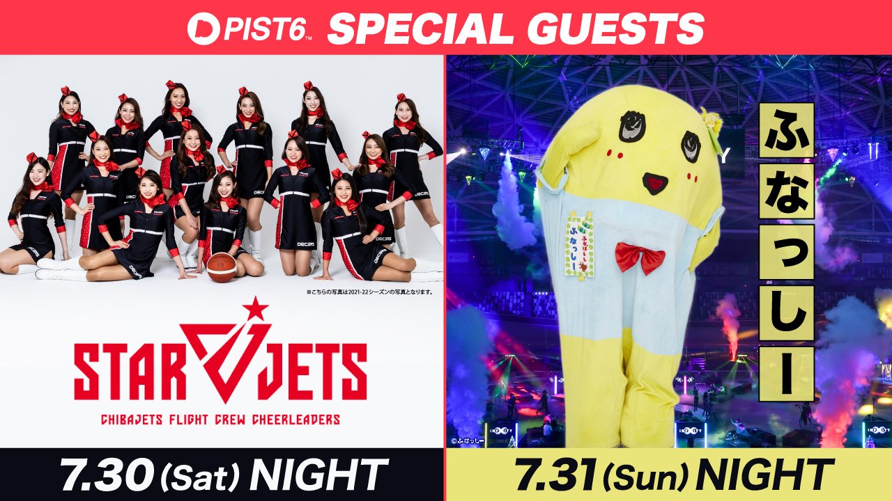 7月30日(土)、31日(日)に開催する「PIST6 Championship 2022-23」セカンドクォーター PIST6カップ1では、スペシャルゲストが日替わりで来場!無料招待Dayでしか見られないパフォーマンスや限定コラボグッズの発売など、スペシャルゲストならではの特別コンテンツで会場を盛り上げます。